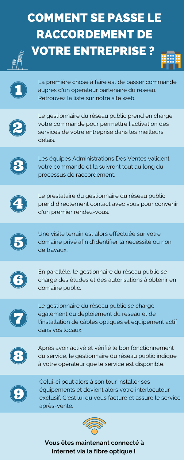 Si vous choisissez une offre Premium, voici les différentes étapes pour raccorder votre entreprise :